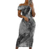 Abstract Print Off-Shoulder Sheath Dress, Slim-Fit Straight Neck for Spring & Summer