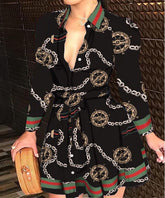 Add a trendy and versatile piece to your wardrobe with this Street Style Printed V-Neck A-Line Skirt Dress. Perfect for casual outings or a day out in the city, this dress combines style with comfort. Featuring a flattering V-neckline and long sleeves, it offers a chic, yet comfortable fit. The A-line skirt with a middle waist ensures freedom of movement, making it both fashionable and functional. With a bold printed design, this dress effortlessly blends street style with casual elegance, making it ideal for everyday wear.