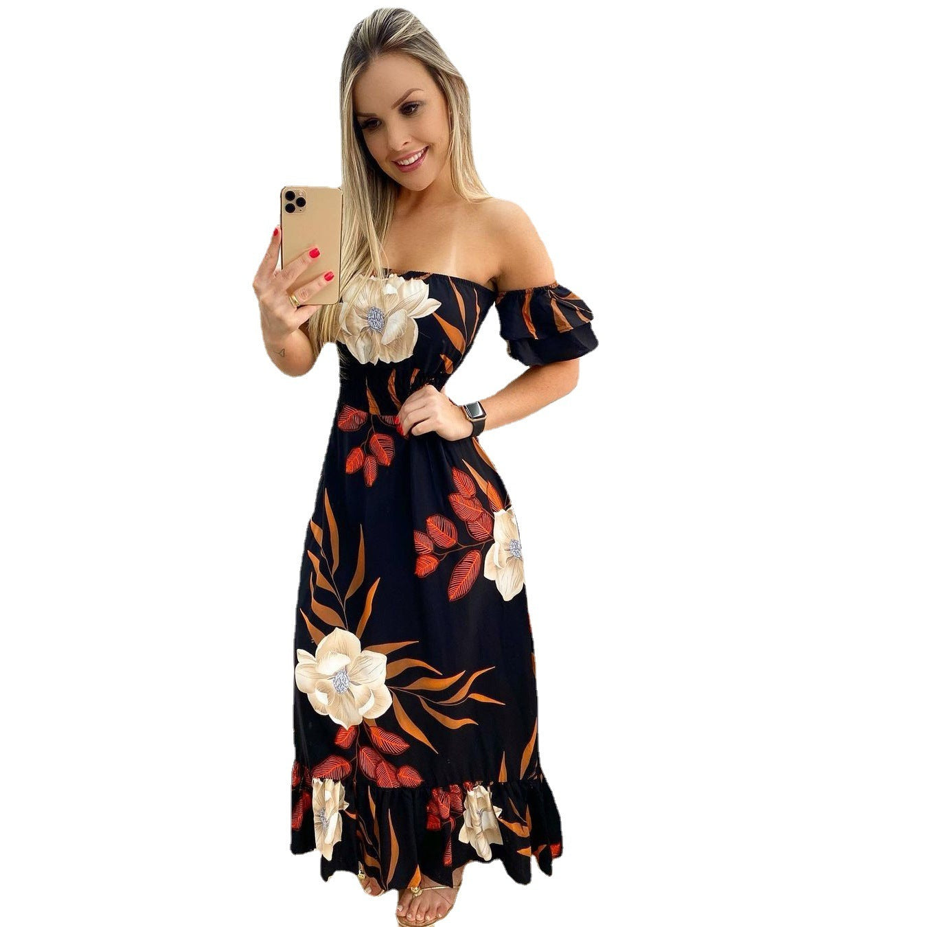 Unveil timeless elegance with this stunning long ruffled skirt dress, perfect for casual outings, formal events, or a stylish evening look. Designed to flatter every figure, this dress combines comfort and sophistication effortlessly.